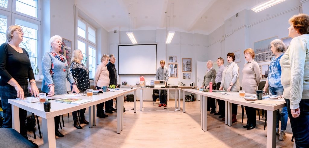 2024 rok obfitował w różnorodne działania dedykowane seniorom i seniorkom zamieszkującym Plac Grunwaldzki. Dzięki dofinansowaniu ze środków Urzędu Marszałkowskiego Województwa Dolnośląskiego zorganizowaliśmy 46 wydarzeń aktywizujących, integrujących i edukacyjnych dla osób 60+. Od stycznia do grudnia odbyły się zarówno muzyczny próby lokalnego chóru, zajęcia sportowe, jak i treningi pamięci, warsztaty wzmacniające kompetencje cyfrowe oraz spotkania psychoedukacyjne.