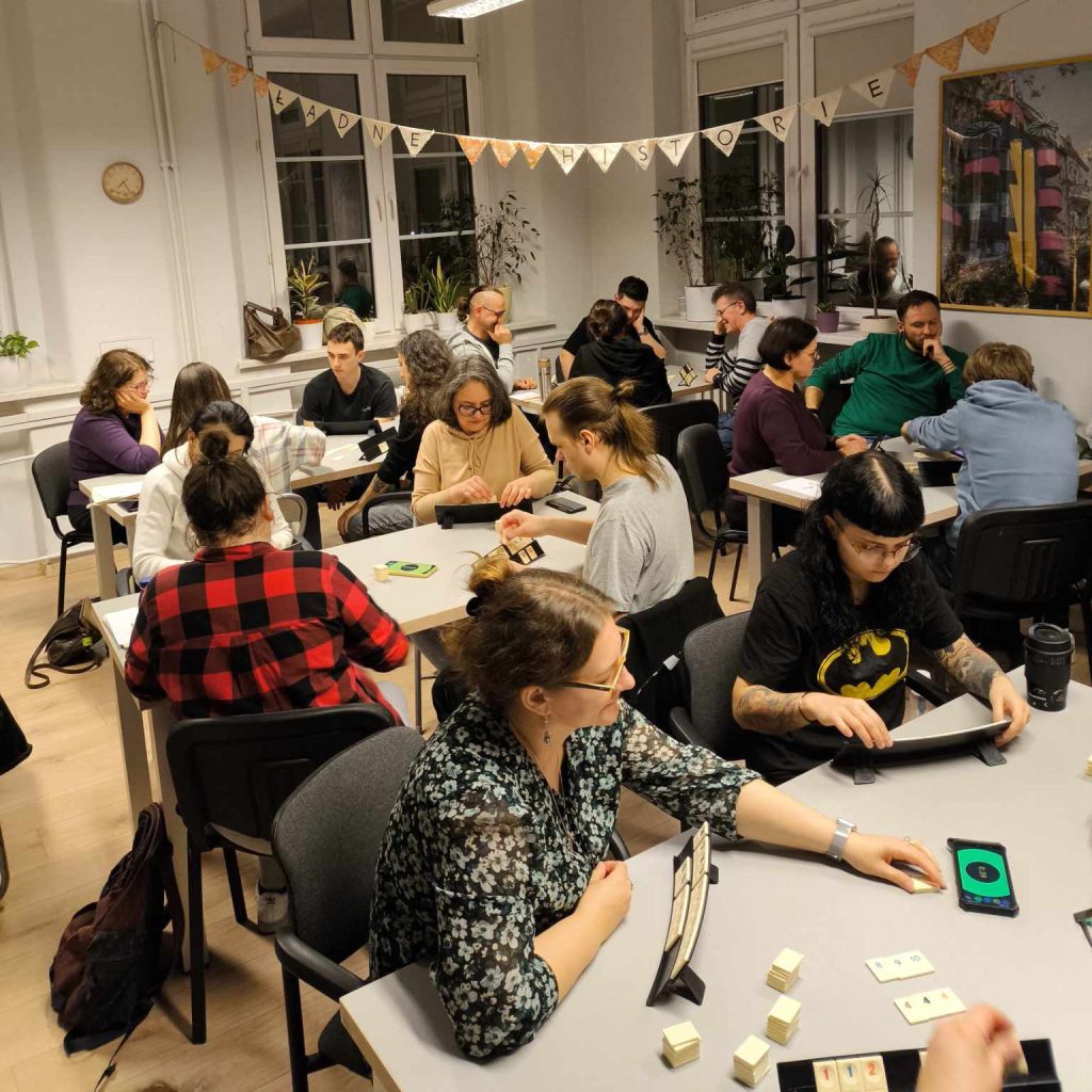 To sąsiedzkie spotkania przy grach! W trakcie popołudniowych spotkań, grupa miłośników i miłośniczek planszówek spotykała się na posiedzenia nad planszą.