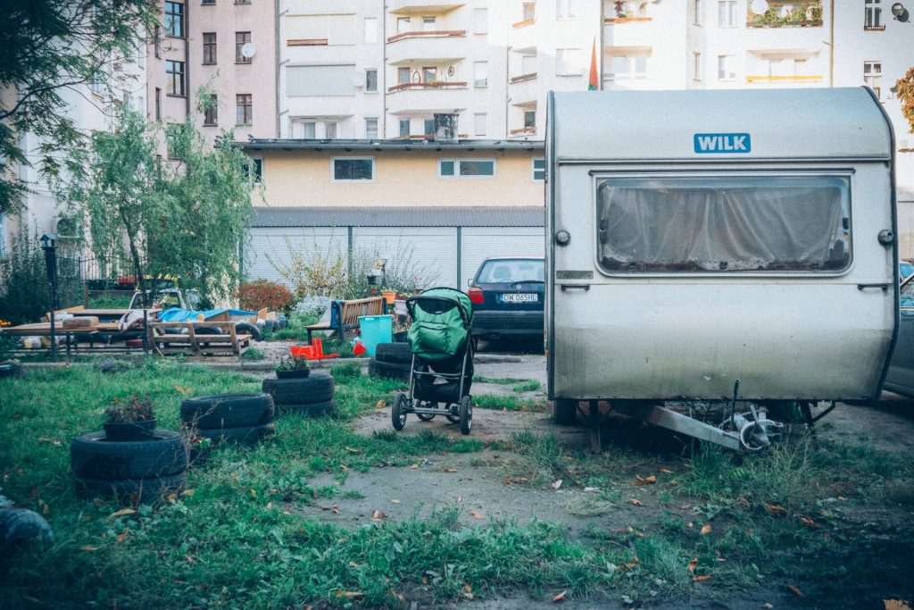 Ostatni raz na moim podwórku byłem 10 lat temu, kiedy robiliśmy na Wydziale Architektury jakiś projekt dotyczący tych przestrzeni. Robiłem trochę zdjęć wraz z moimi ówczesnymi studentami. Wtedy było tak samo. Nie wiem jak jest teraz, bo być może przez ostatnie 10 lat coś się zmieniło. Może miasto pomogło jakoś zainterweniować w te miejsca. Naprawdę trudno mi powiedzieć, jak jest teraz, bo nie śledzę tej tkanki społecznej i tego jak ona się zmienia, i co się tam dzieje. Kiedy ja mieszkałem w grunwaldzkiej plombie, mając kilka-kilkanaście lat, to ludzie którzy tam mieszkali, nie mieli najmniejszych szans wyjścia na prostą i raczej nikt im nie pomagał, albo pomagano im nieskutecznie, zbyt mało. Brakowało wszystkiego, zwłaszcza jakiejkolwiek infrastruktury, miejsc, w których ci ludzie mogliby wartościowo spędzać czas, street workerów itd. To chyba nie istniało. Niestety większość mieszkańców, których spotykałem na co dzień, miała tak niski kapitał społeczny i tak niskie możliwości finansowe, że szanse na to aby ktoś stamtąd zmienił swoje życie na lepsze były bliskie zera. To o czym opowiadam, dotyczy przede wszystkim starych, przedwojennych kamienic. W plombach i nowych blokach bywało różnie. Natomiast w tych starych budynkach ludzie często nadal nie mieli toalet, łazienek, to też wpływało na ich poziom życia. Nie sądzę by podejmowano wówczas, w tych dzikich początkach lat 90., realne próby wyrównywania szans ludziom z różnych środowisk. Nie było takich koncepcji, nie było też chyba na to pieniędzy, więc wątpię, żeby moi rówieśnicy, o ile jeszcze niektórzy z nich żyją i nie siedzą w więzieniach, choćby wykształcili swoje dzieci, bo nie mieli takich możliwości materialnych. I tak, rzeczywiście część moich kolegów z tamtych czasów znalazła się w poprawczakach, słyszałem, że później niektórzy w więzieniach, ktoś zmarł z przepicia lub przećpania. Gdy mieliśmy po 12-13 lat niestety zaczynaliśmy na podwórku pić wódkę, gdy mieliśmy po 13-14 lat część poszła w ćpanie kleju i tego typu pomysły – widziałem jak ci ludzie umierają, dosłownie na moich oczach.