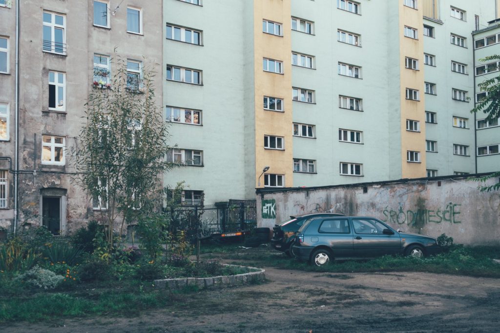 МБ: Востаннє я був на своєму внутрішньому дворі 10 років тому, коли ми робили якийсь проект на архітектурному факультеті, присвячений цим просторам. У той час я трохи фотографував разом зі своїми тодішніми студентами. Все було так само, як і тоді. Мені не відомо, як воно зараз, тому що, ймовірно, щось змінилося за останні 10 років. Може, місто якось допомогло навести лад у цих місцях. Насправді мені важко сказати, як воно зараз, тому що я не відстежую цієї соціальної структури, як вона змінюється і що в ній відбувається. Коли я жив у грунвальдській добудові, так званій „пломбі”, мені було кілька років,люди, які там жили, не мали ані найменшого шансу вибратися звідти самостійно, і ніхто не прагнув їм допомогти, або ж їм надавали допомогу неефективно, надто мало. Бракувало всього, особливо інфраструктури, місць, де ці люди могли б проводити час з користю, вуличних робітників і так далі. Такого, здається, не існувало. На жаль, більшість мешканців, яких я зустрічав щодня, мали настільки низький соціальний капітал і настільки низькі фінансові можливості, що шанси на те, що хтось із них змінить своє життя на краще, були близькі до нуля. Те, про що я говорю, стосується переважно старих, довоєнних кам’яниць. У новобудовах і нових будинках ситуація була іншою. В цих старих будівлях люди часто не мали туалетів, ванних кімнат, і це також впливало на рівень їхнього життя. Я не думаю, що в той час, на початку диких 90-х, були якісь реальні спроби прирівняти умови для людей з різних прошарків суспільства. Таких концепцій не було, і не думаю, що на це були гроші, тому сумніваюся, що мої однолітки, якщо дехто з них ще живий і не сидить у в’язниці, навіть давали освіту своїм дітям, бо не мали таких матеріальних можливостей. І так, дійсно, деякі мої колеги з тих часів опинилися у виправних колоніях, я чув, що пізніше деякі у в’язницях, хтось помер від пияцтва чи передозування. Коли нам було 12-13 років, то на жаль, ми почали пити горілку на задньому дворі, коли нам було 13-14 років, дехто з них почав вживати наркотики, і я бачив, як ці люди помирали буквально на моїх очах.