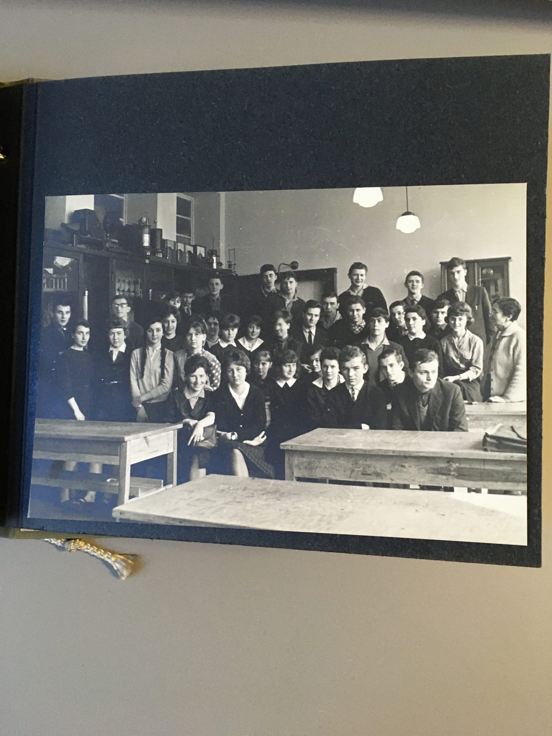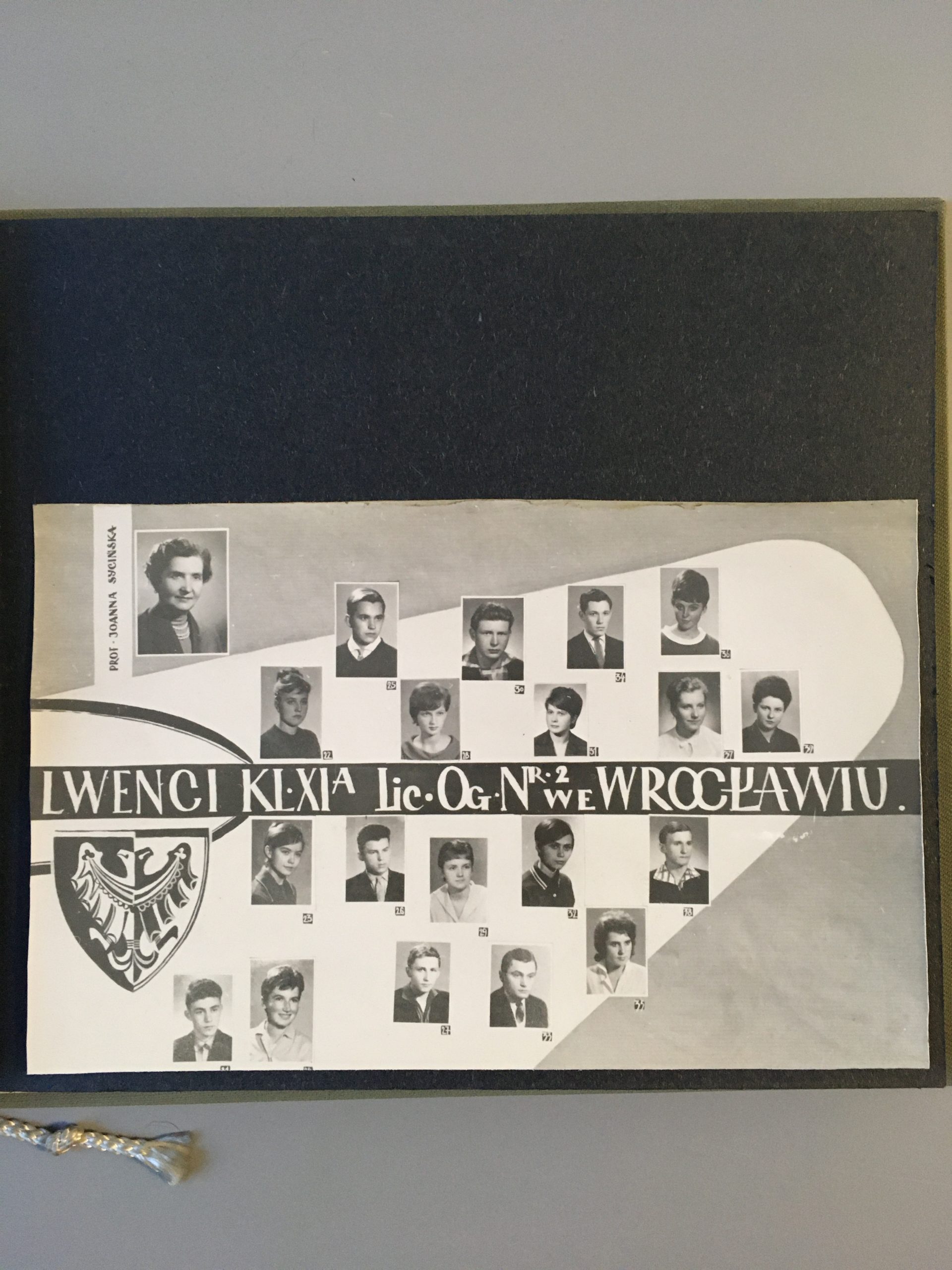 Opis: Kronika absolwentów Liceum Ogólnokształcącego nr 2 im. Piastów Śląskich podarowana prof. Joannie Sicińskiej w dniu otrzymania świadectw dojrzałości. Lata 1960-1964. Fotografia klasowa.