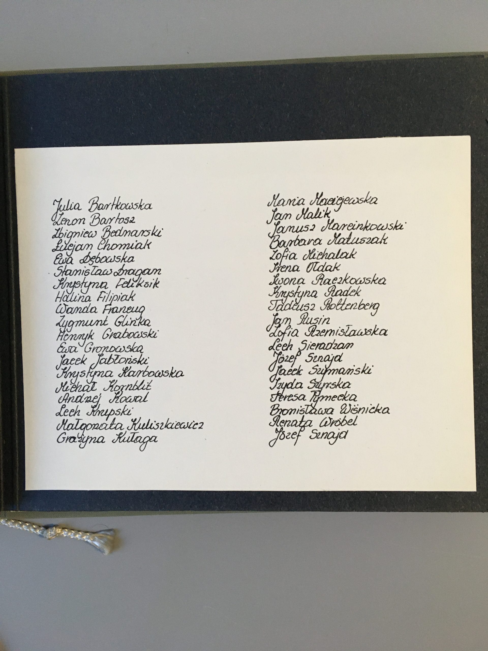 Opis: Kronika absolwentów Liceum Ogólnokształcącego nr 2 im. Piastów Śląskich podarowana prof. Joannie Sicińskiej w dniu otrzymania świadectw dojrzałości. Lata 1960-1964. Spis uczniów.