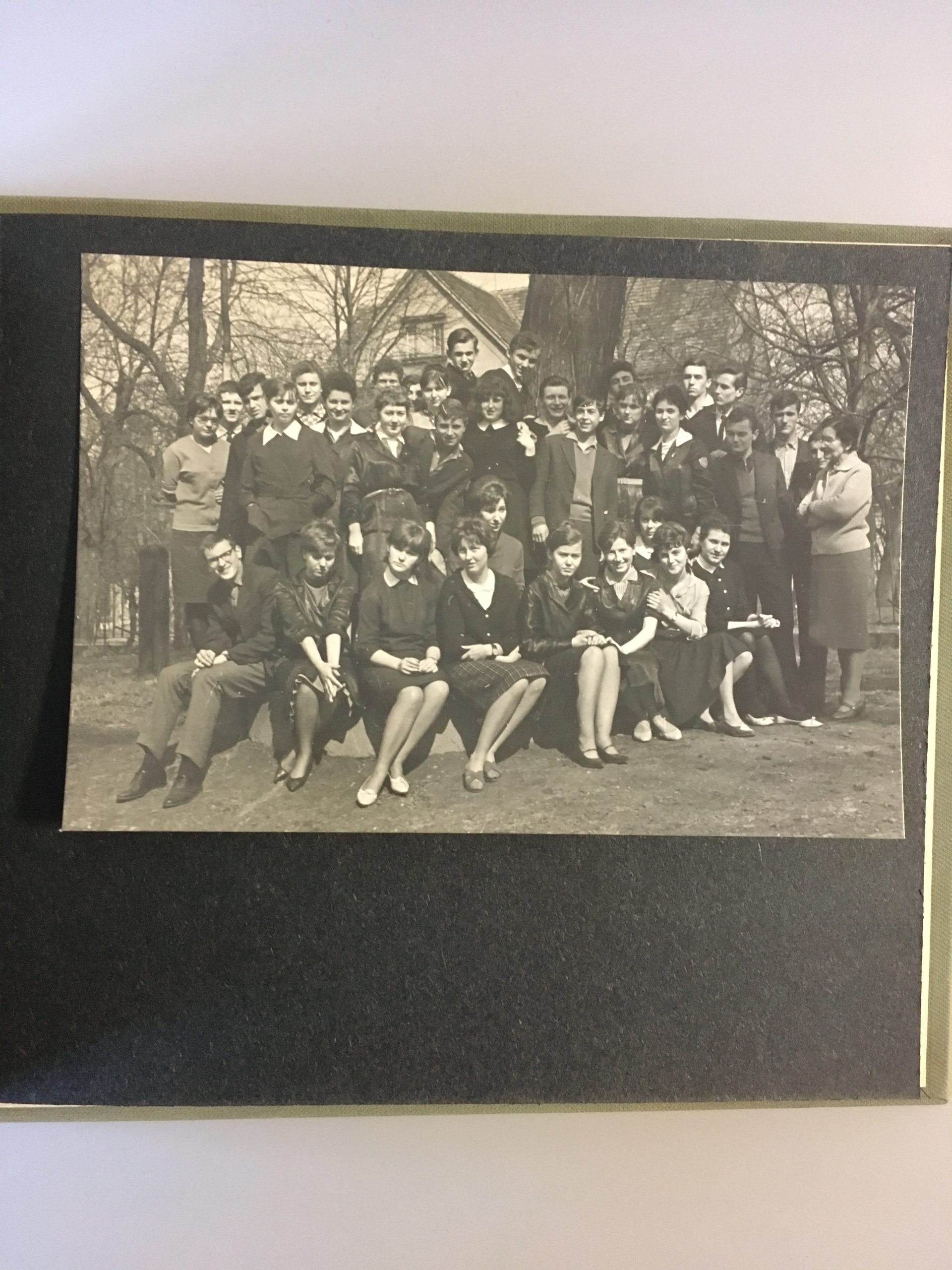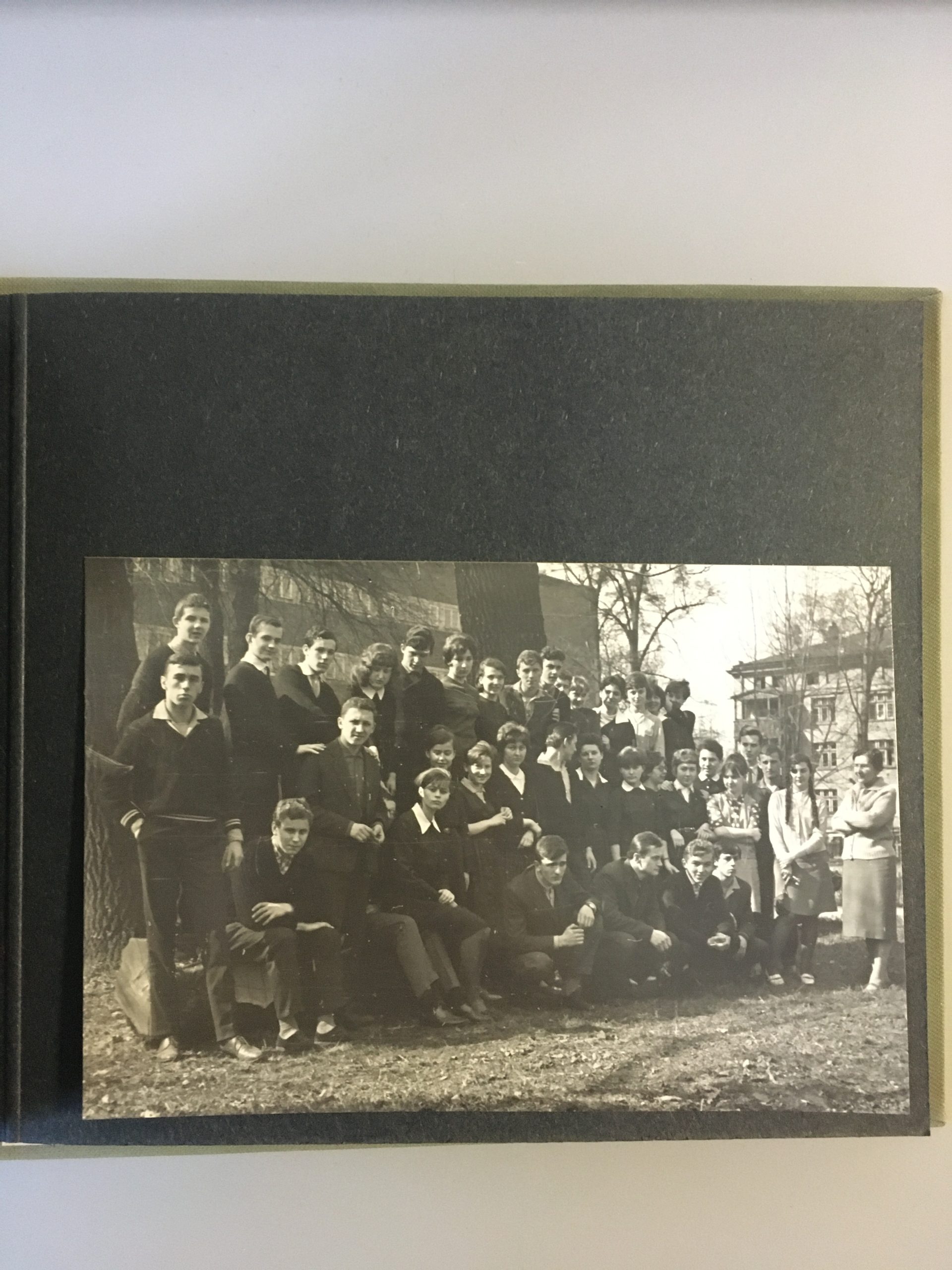 Opis: Kronika absolwentów Liceum Ogólnokształcącego nr 2 im. Piastów Śląskich podarowana prof. Joannie Sicińskiej w dniu otrzymania świadectw dojrzałości. Lata 1960-1964. Na fotografii uczniowie szkoły.