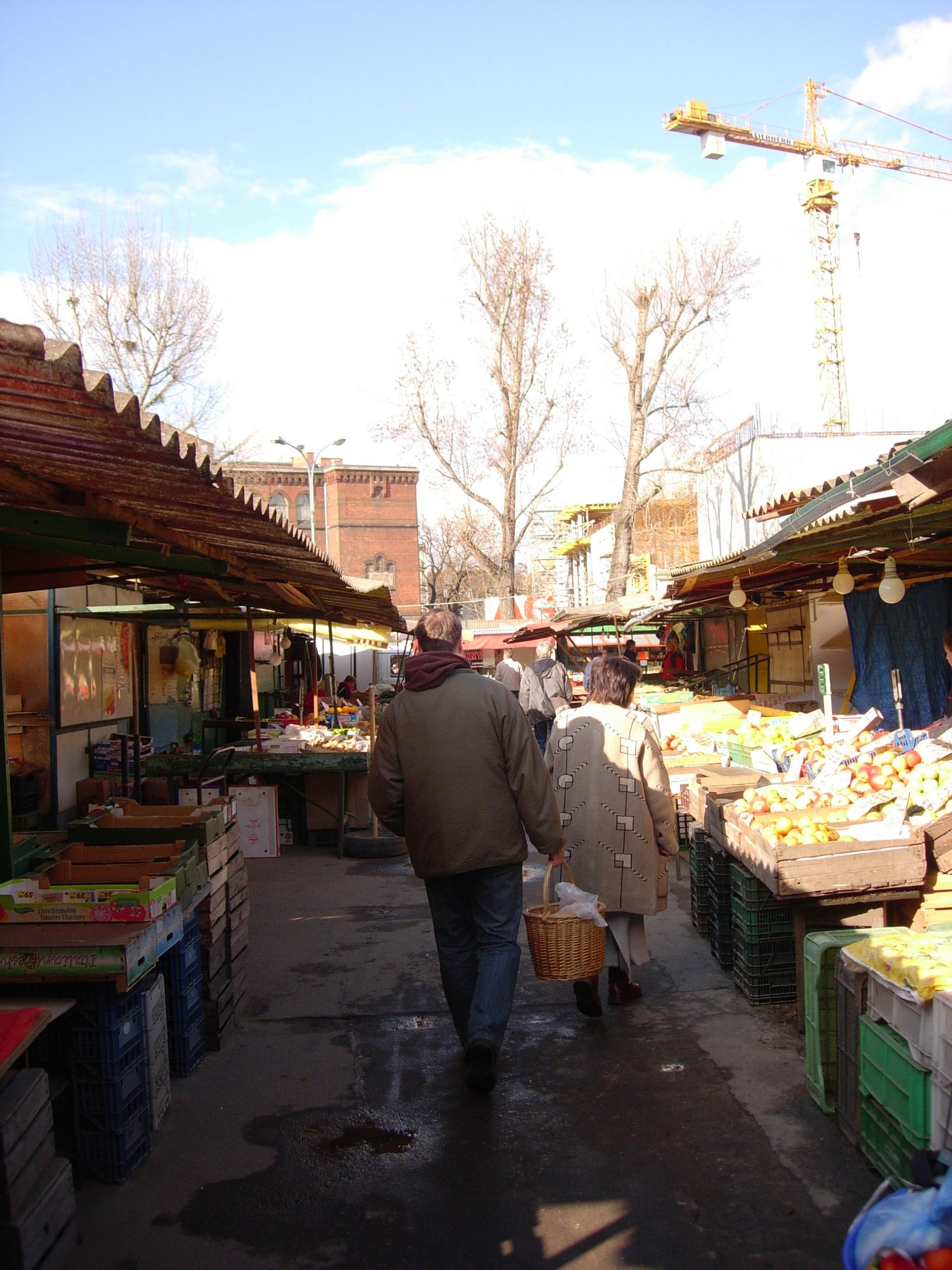 Opis: Targowisko powstało w 1947 roku po zamknięciu szaberplacu, który funkcjonował w tym samym miejscu. Z biegiem lat stało się jednym z najbardziej popularnych targów we Wrocławiu, przyciągającym wielu mieszkańców. W latach 90. XX wieku funkcjonowało pod rozłożonym namiotem cyrkowym „Goliat”. W 2006 roku zostało zamknięte, a na jego miejscu wybudowano Pasaż Grunwaldzki. Na fotografii jedna z alejek targowiska, w tle budynki Manhattanu.