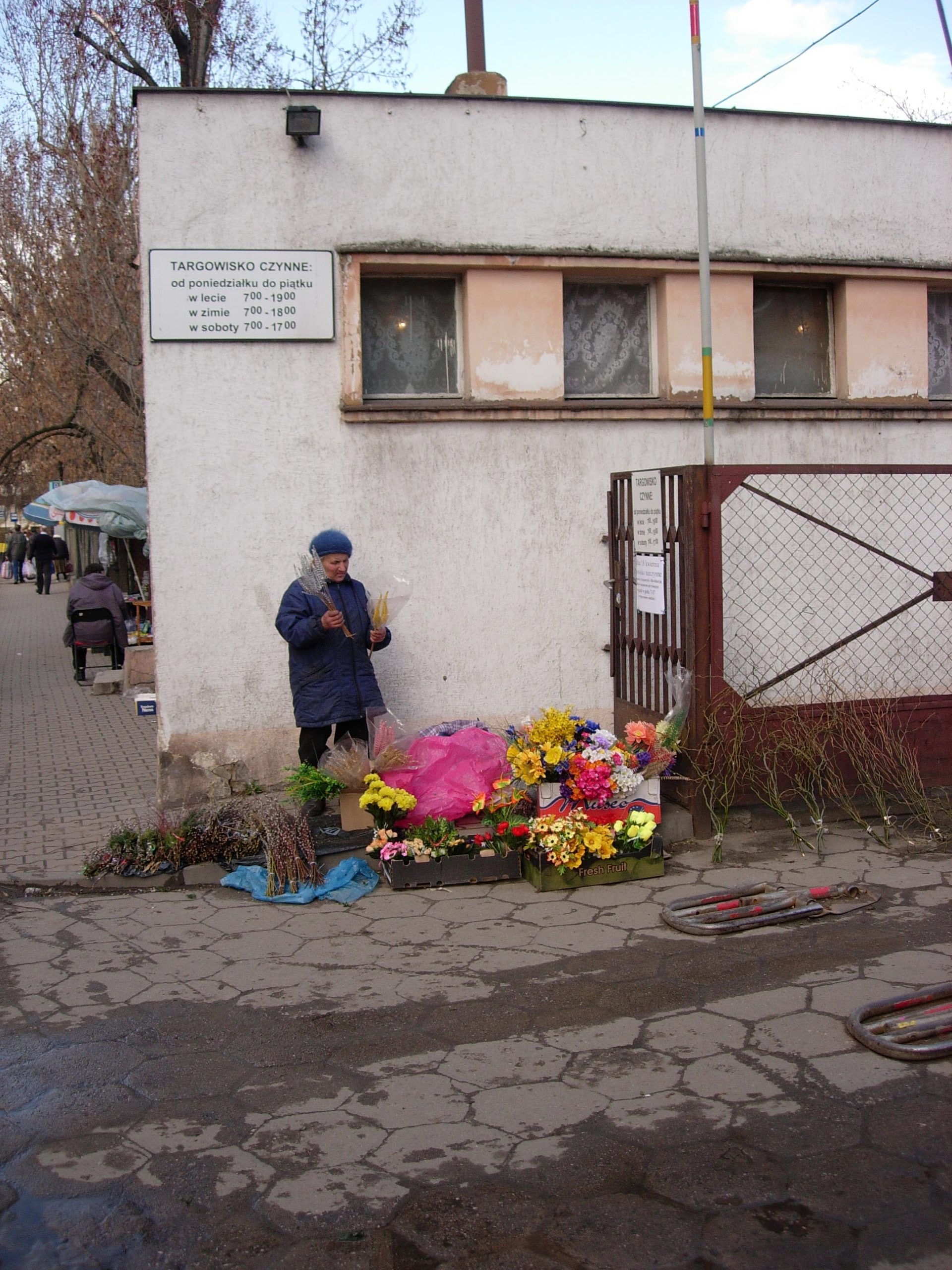 Opis: Targowisko powstało w 1947 roku po zamknięciu szaberplacu, który funkcjonował w tym samym miejscu. Z biegiem lat stało się jednym z najbardziej popularnych targów we Wrocławiu, przyciągającym wielu mieszkańców. W latach 90. XX wieku funkcjonowało pod rozłożonym namiotem cyrkowym „Goliat”. W 2006 roku zostało zamknięte, a na jego miejscu wybudowano Pasaż Grunwaldzki. Na fotografii informacja o przeniesieniu lokalizacji targowiska.