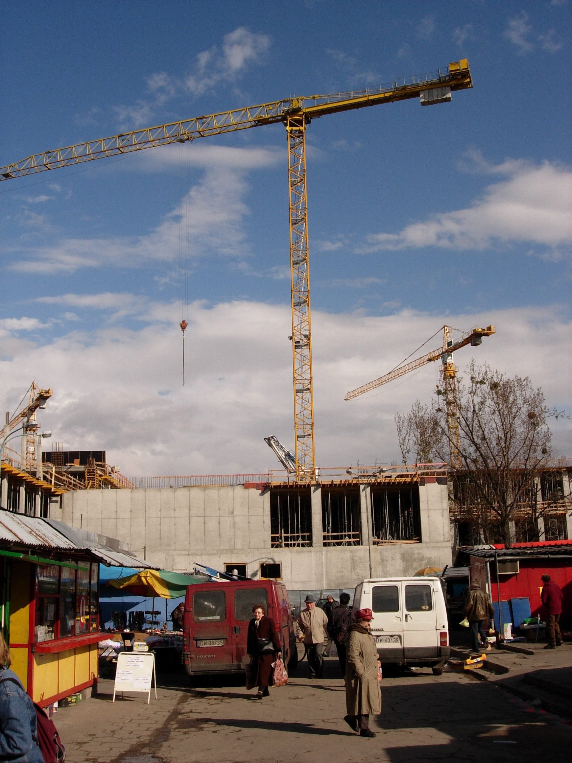 Opis: Targowisko powstało w 1947 roku po zamknięciu szaberplacu, który funkcjonował w tym samym miejscu. Z biegiem lat stało się jednym z najbardziej popularnych targów we Wrocławiu, przyciągającym wielu mieszkańców. W latach 90. XX wieku funkcjonowało pod rozłożonym namiotem cyrkowym „Goliat”. W 2006 roku zostało zamknięte, a na jego miejscu wybudowano Pasaż Grunwaldzki. Na fotografii trwająca budowa galerii handlowej.