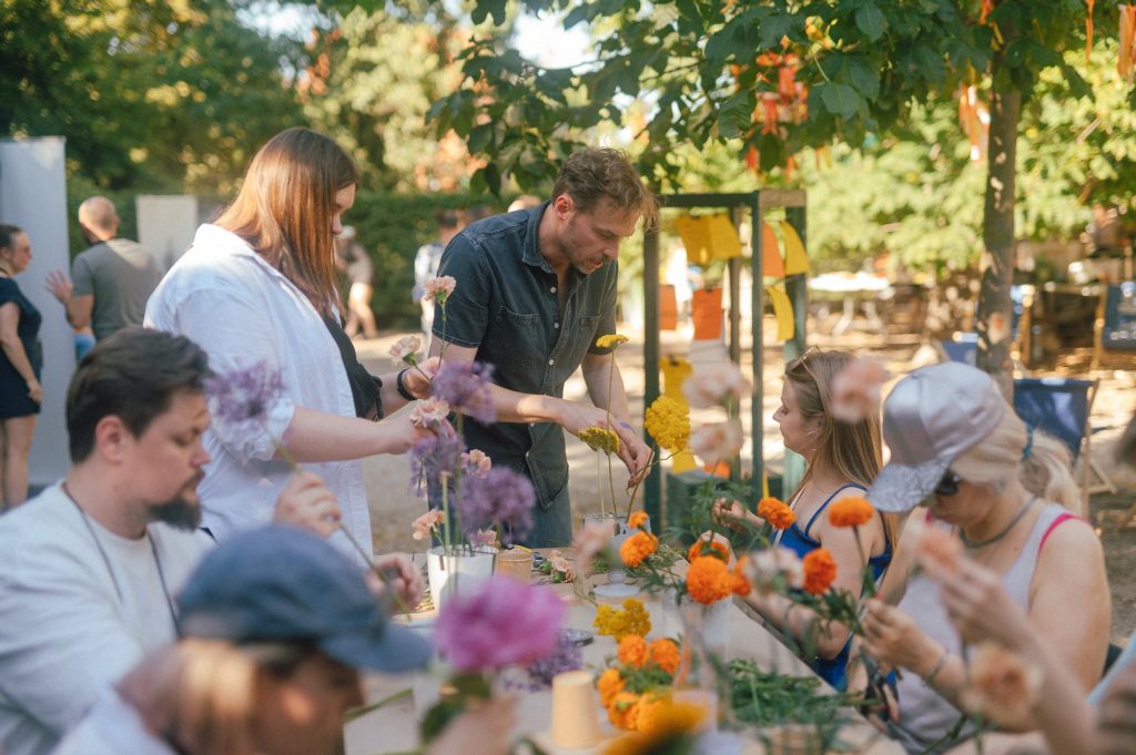 Co najbardziej podobało się uczestniczkom i uczestnikom w Osiedlu dla Sztuki 2023? Większość bez zastanowienia odpowiadała – sąsiedzka atmosfera i warsztaty florystyczne. Dużym zainteresowaniem cieszyły się także pozostałe proponowane tego dnia zajęcia, m.in. linorytu czy sitodruku. Czas spędzony przy stole sąsiedzkim również nie pozostał bez echa i pojawił się w wielu odpowiedziach.