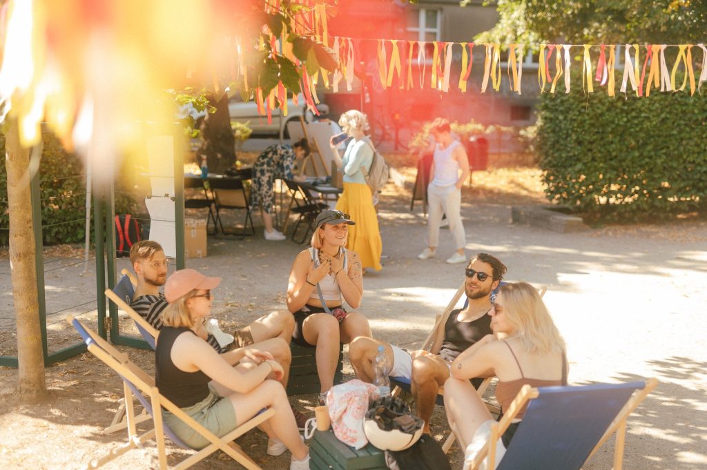 Program wydarzenia powstał w oparciu o wyniki ankiet ewaluacyjnych z lokalną społecznością. Na podstawie wypełnianych przez Was fiszek badawczych, przygotowaliśmy działania, które cieszą się dużym zainteresowaniem. Od 7 czerwca do 15 lipca spacerowaliśmy po osiedlu, a także braliśmy udział w kreatywnych warsztatach florystycznych, sitodruku, linorytu czy robiliśmy sobie zdjęcia portretowe w mobilnym studio fotograficznym.