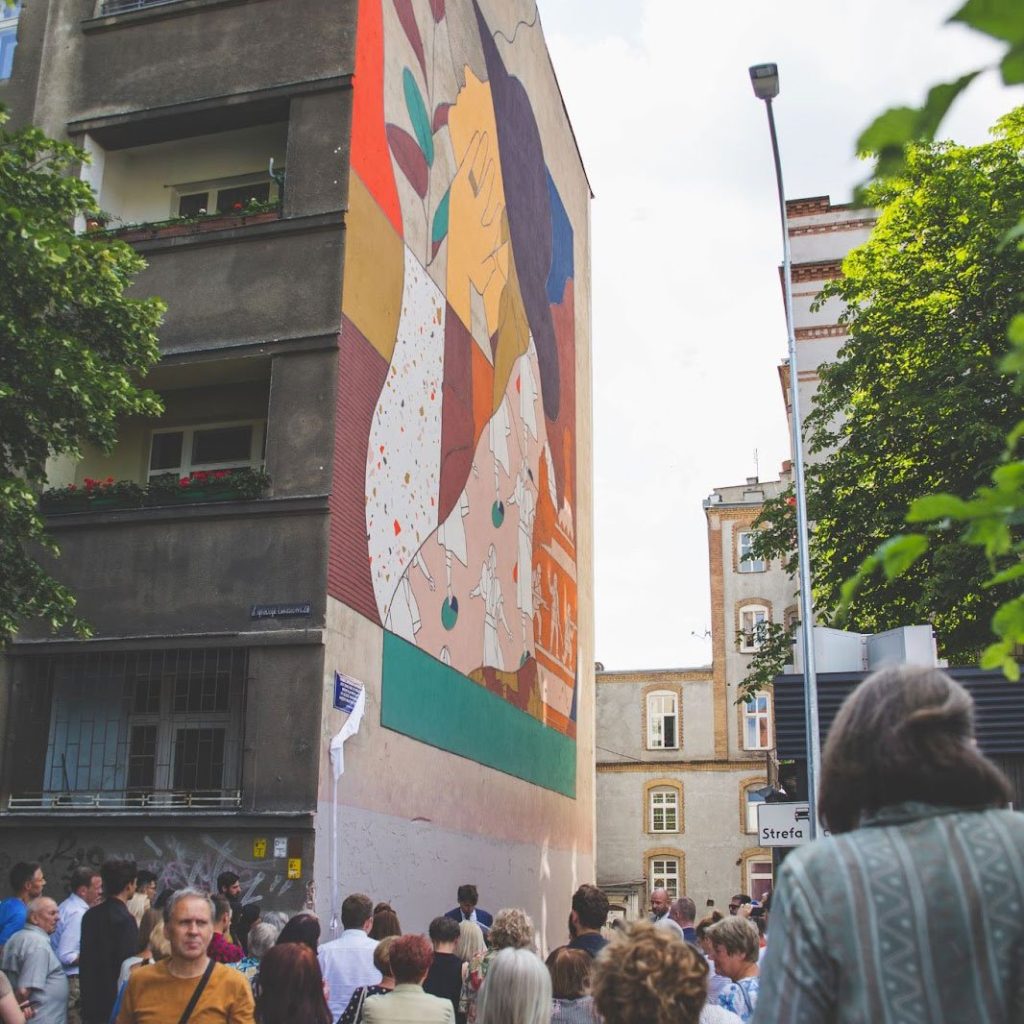 Pomysł na to, by na terenie osiedla Plac Grunwaldzki pojawiły się przykłady działań artystycznych, jest nieprzypadkowy. Naszą pierwszą przygodą ze społecznością Grunwaldu była organizacja sąsiedzkiego stołu na skwerze im. Ireny Sendlerowej, nad którym do dziś podziwiać możecie niezwykły mural, wykonany jako znak przyjaźni i prezent dla Wrocławia od Bredy – naszego miasta partnerskiego z Holandii. To właśnie to spotkanie umożliwiło nam poznanie mieszkanek i mieszkańców osiedla, którzy swoją serdecznością i otwartością sprawili, że pokochaliśmy tę część Wrocławia. Sentyment do murali, rzeźb i artystycznych obiektów w przestrzeni publicznej pozostał z nami do dzisiaj, a mural autorstwa Robina Nasa mijamy codziennie, idąc do naszego centrum.