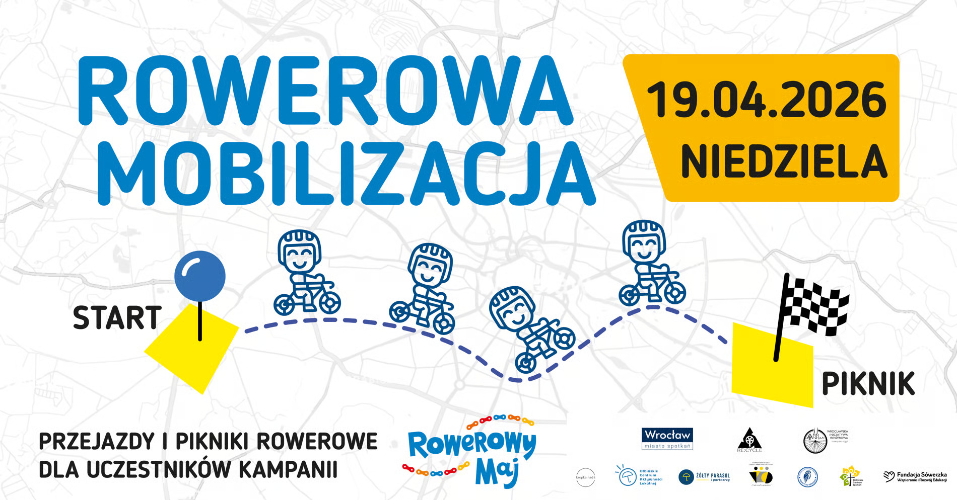 Już w najbliższą niedzielę (19 kwietnia) w trzech miejscach miasta, najmłodsi rowerzyści oraz rowerzystki i ich rodzice wyruszą na trasy. Każdy przejazd zakończy się piknikiem z wieloma atrakcjami. „Rowerowa Mobilizacja” to rozgrzewka przed wrocławskim „Rowerowym Majem”.