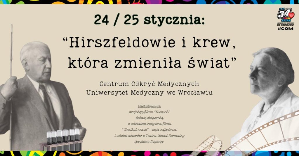 Serdecznie zapraszamy do udziału w wydarzeniu: „Krew, która zmieniła świat. Weekend WOŚP z Hirszfeldami”, które odbędzie się 24 i 25 stycznia 2026 r. w przyszłej siedzibie Centrum Odkryć Medycznych Uniwersytetu Medycznego we Wrocławiu przy ul. Marii Curie-Skłodowskiej 66-68.